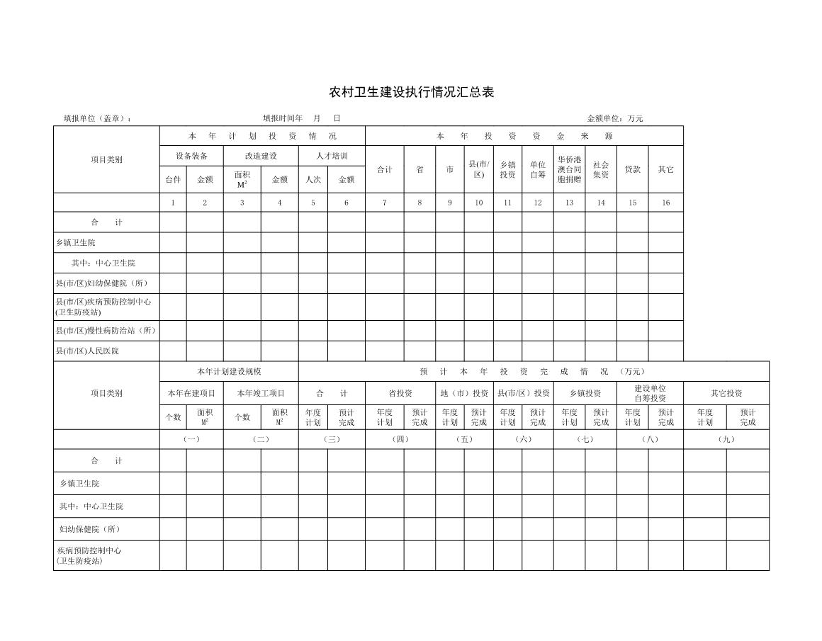农村卫生建设执行情况汇总表模板