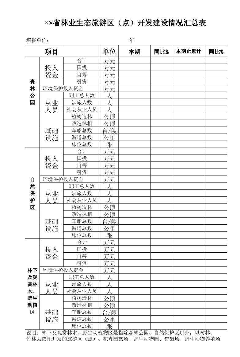 省林业生态旅游区(点)开发建设情况汇总表模板
