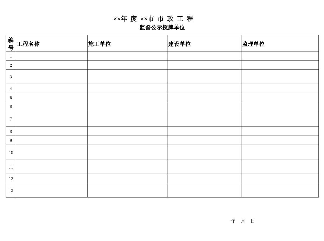 首页 > Excel表格 > 工程建设 > 市政工程监督公示授牌单位模板