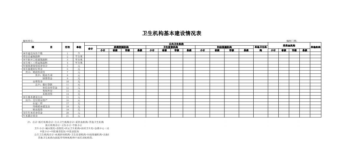 卫生机构基本建设情况表1模板 word格式/A4打印纸/内容随便改写