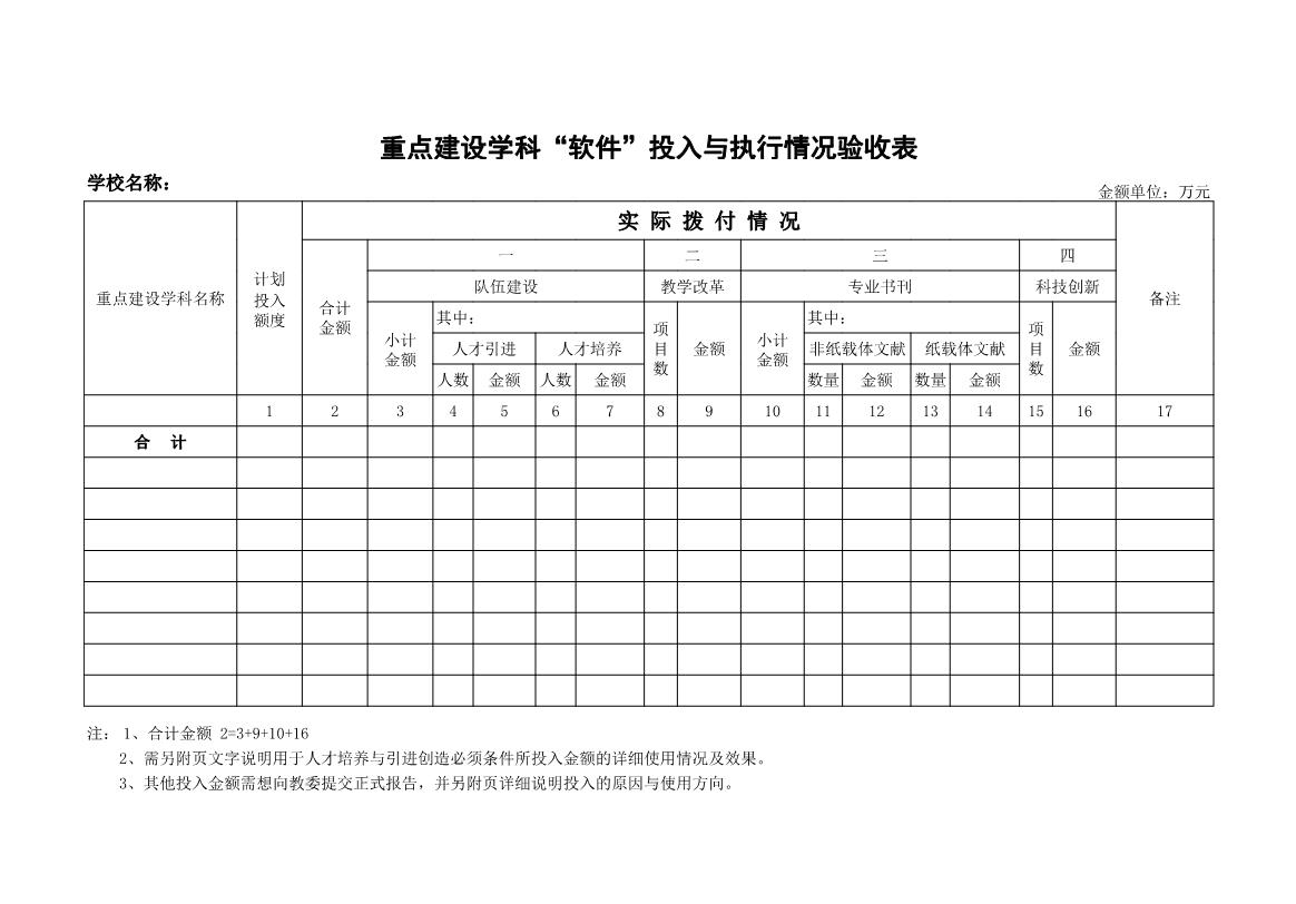 重点建设学科“软件”投入与执行情况验收表模板推荐