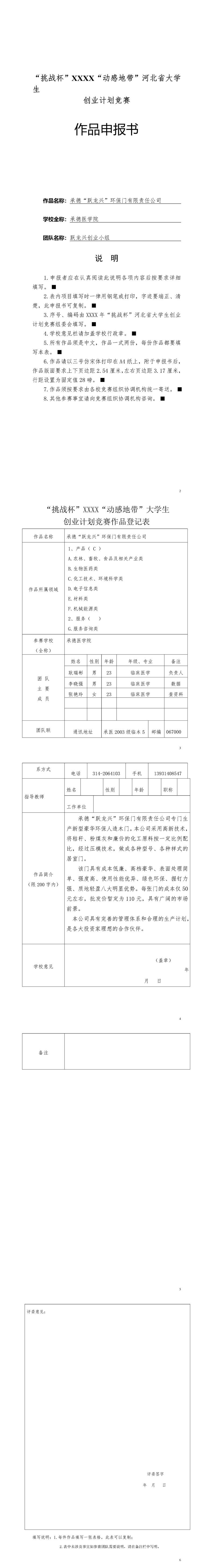 首页 > Word模板 > 计划方案 > 商业计划书《承德“跃龙兴”环保门有限责任公司》模板