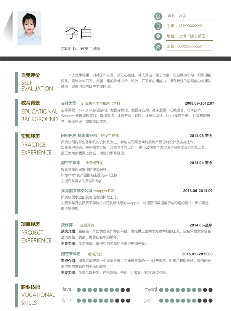 首页 > Word模板 > 简历word模板 > 简历模板 开发工程师(word模板)