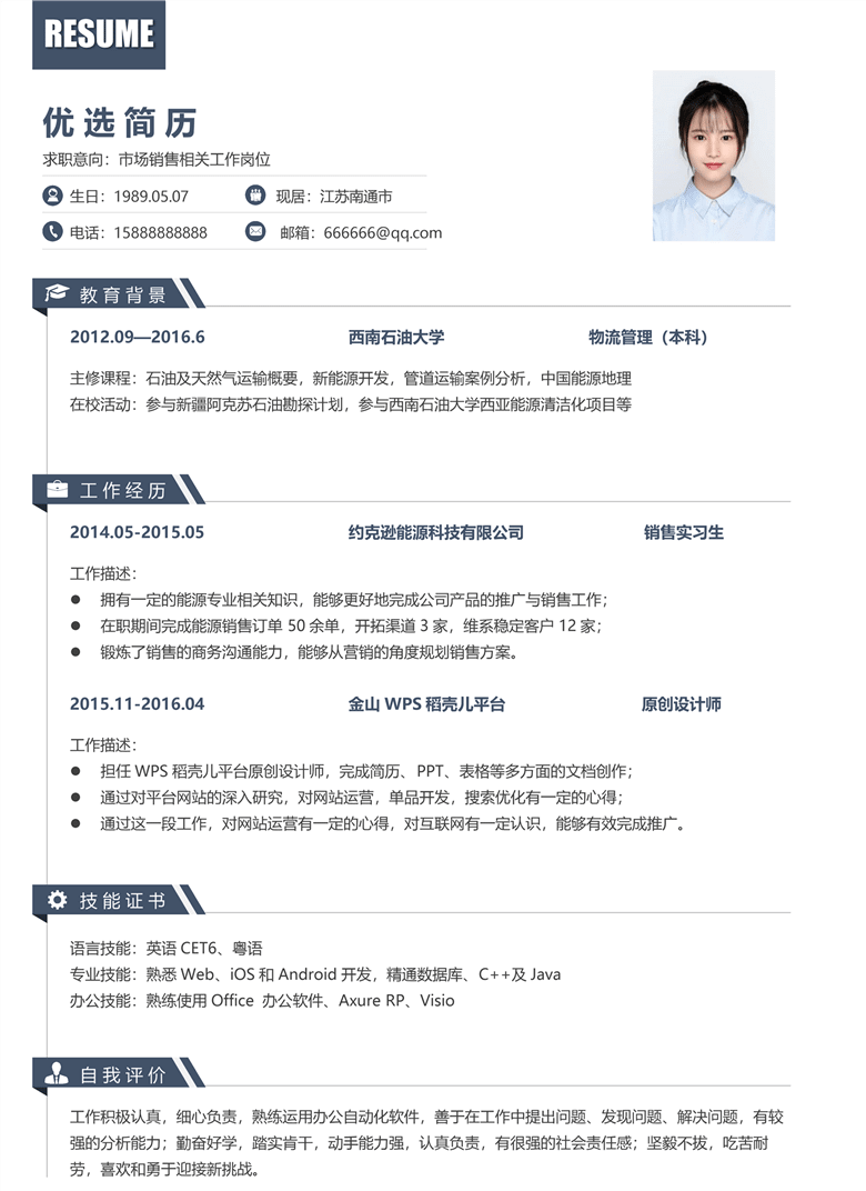 首页 > Word模板 > 简历word模板 > 简历模板 市场销售范文(word模板)