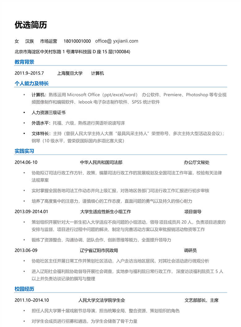 简历模板 营销推广范文(word模板)
