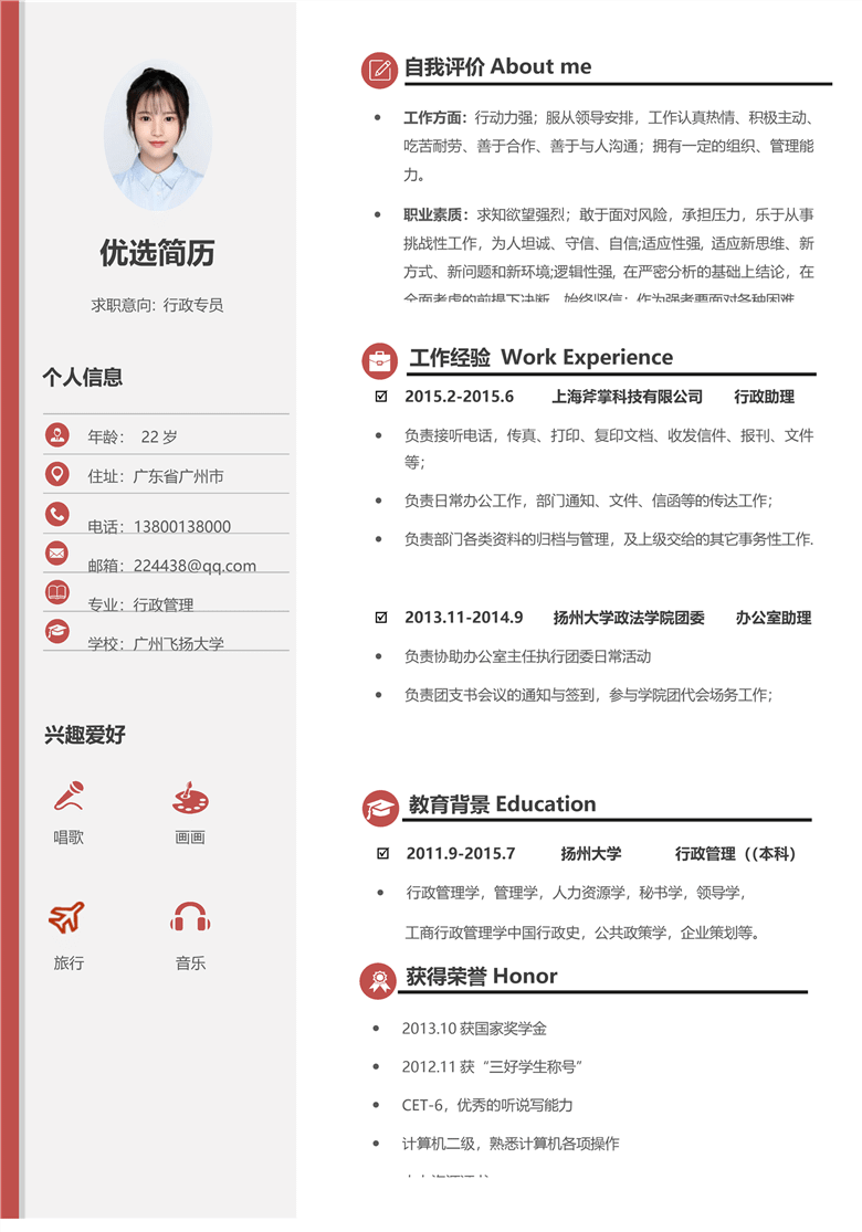 简历模板 行政文秘范文(word模板)