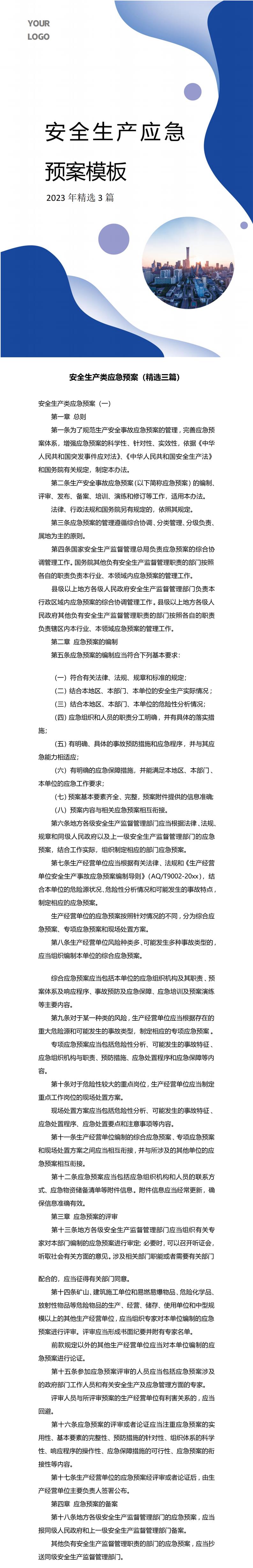 安全生产应急预案模板(2023年全新精选3篇)