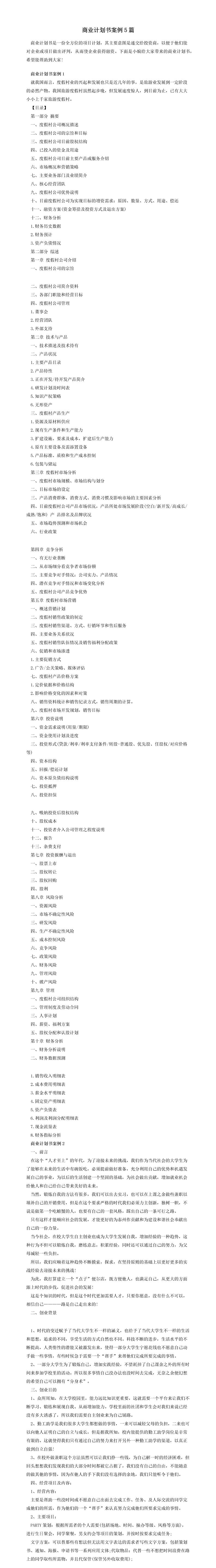 首页 > Word模板 > 计划方案 > 商业计划书案例5篇