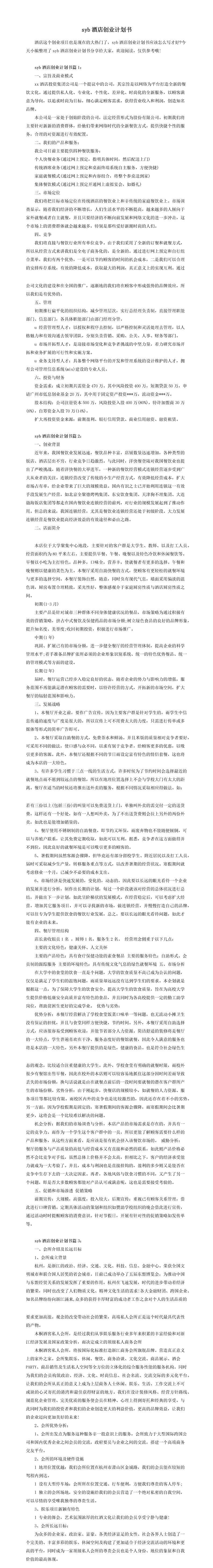 首页 > Word模板 > 计划方案 > syb酒店创业计划书