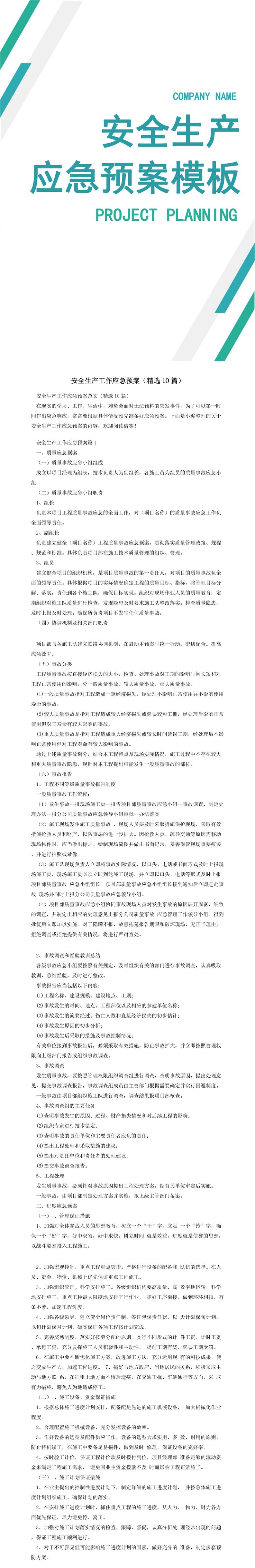 安全生产应急预案模板(精选10篇)推荐
