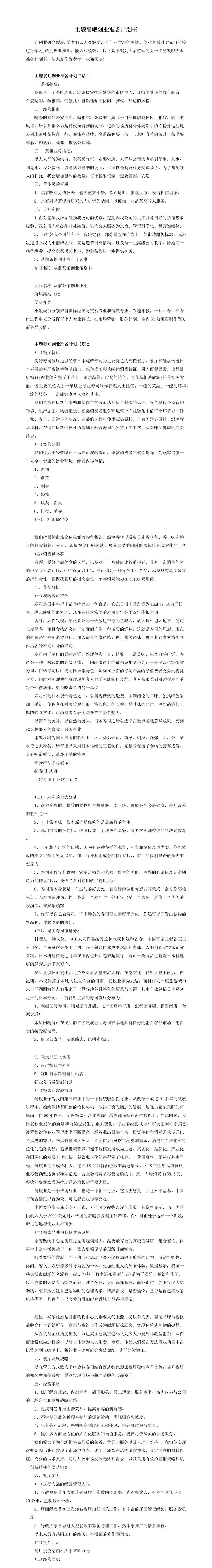 主题餐吧创业准备计划书推荐