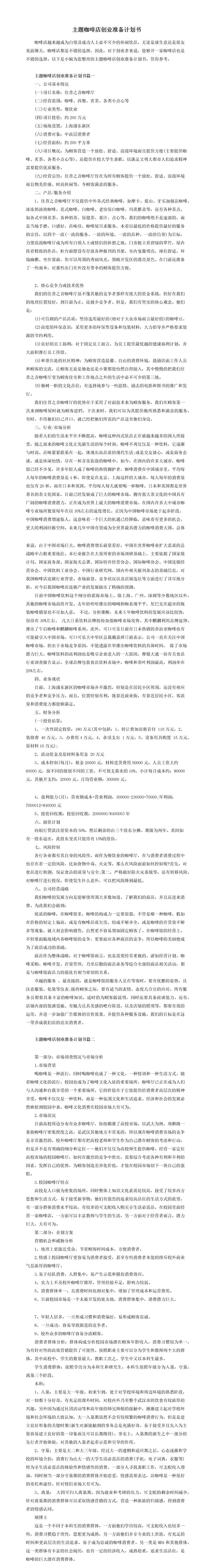 主题咖啡店创业准备计划书推荐