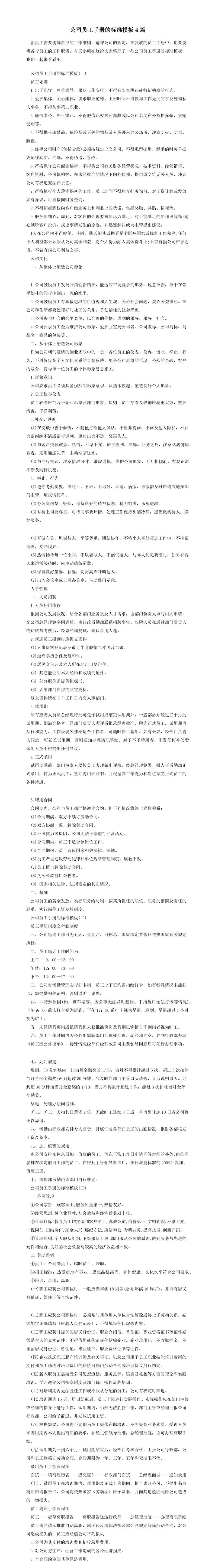 首页 > Word模板 > 人力资源 > 公司员工手册的标准模板4篇