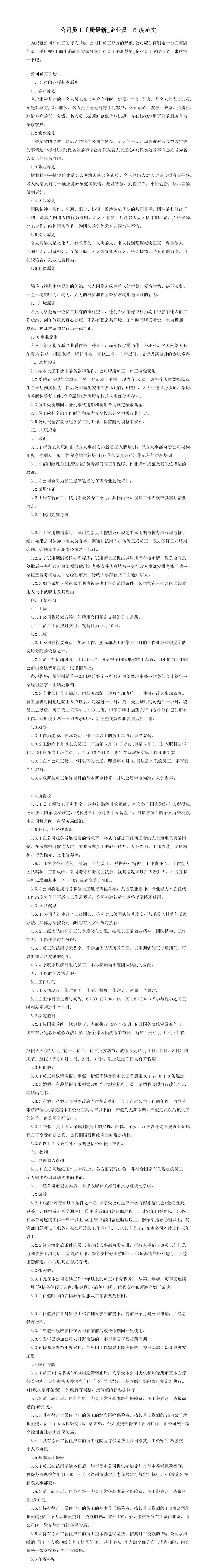 公司员工手册最新_企业员工制度范文推荐