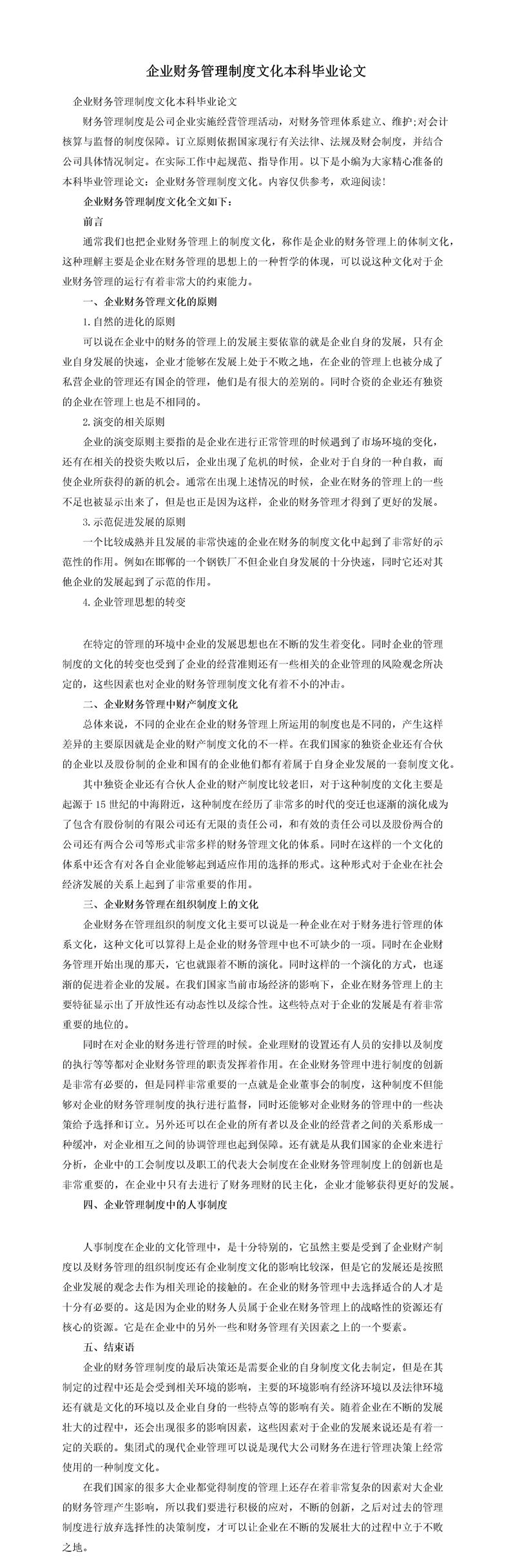 企业财务管理制度文化本科毕业论文推荐