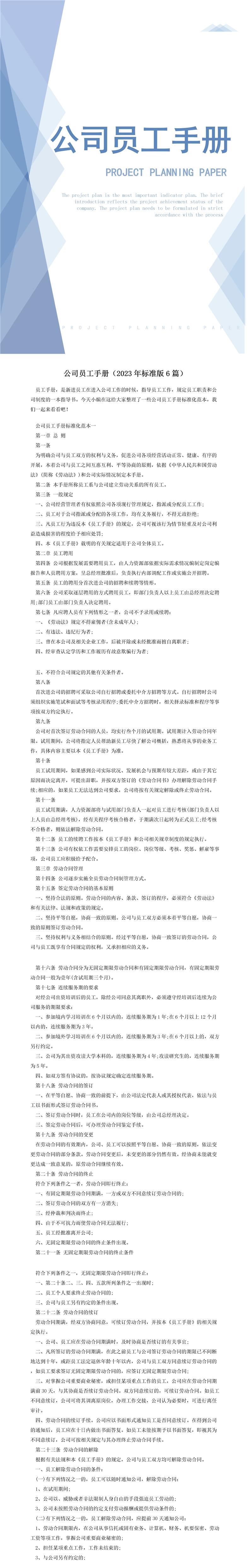 公司员工手册(2023年标准化6篇)