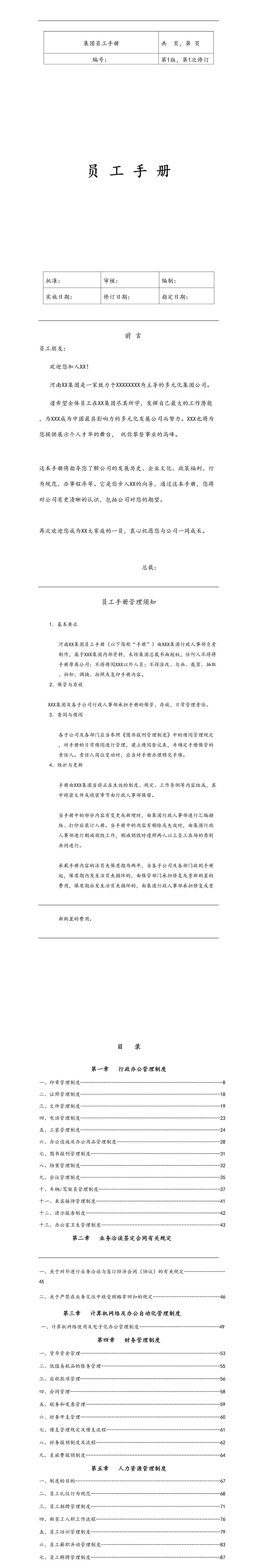 首页 > Word模板 > 人力资源 > 公司员工手册模板【大型公司】