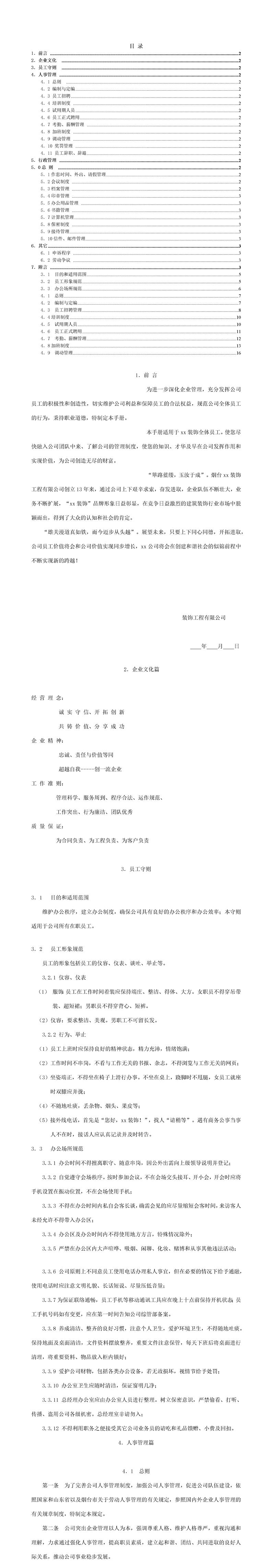 首页 > Word模板 > 人力资源 > 公司员工手册 (2)模板【装饰公司】