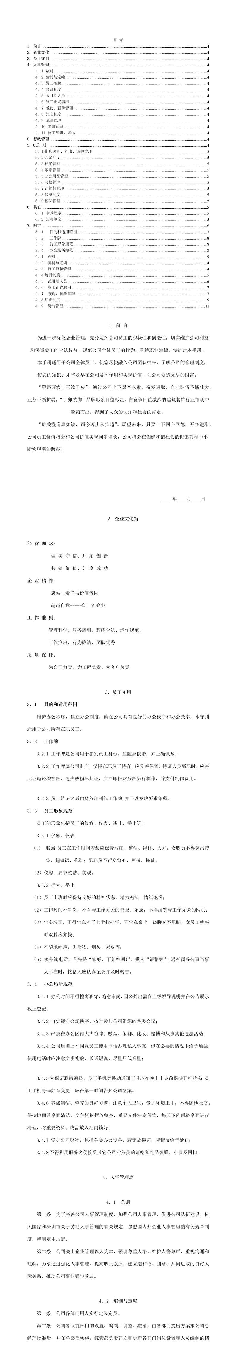 首页 > Word模板 > 人力资源 > 公司员工手册模板【装饰公司】
