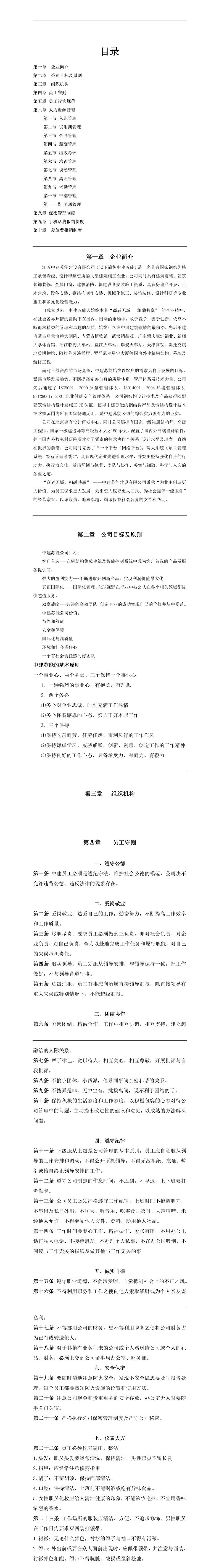 公司员工手册模板(建设)