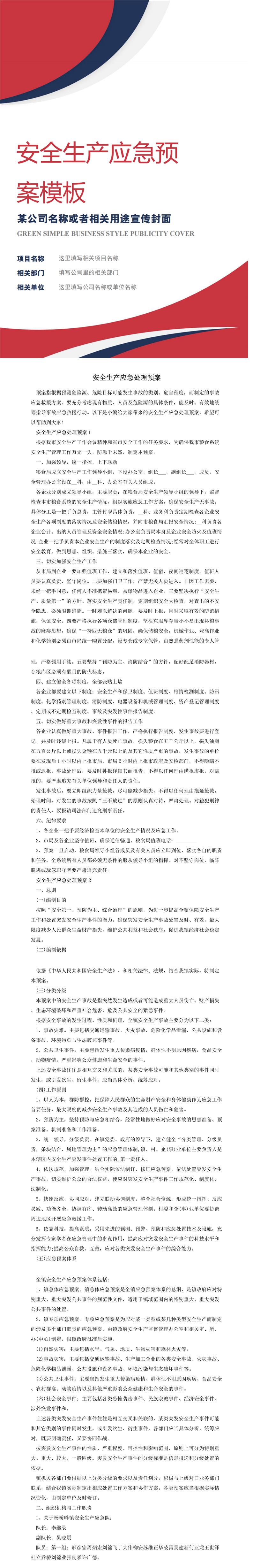 首页 > Word模板 > 计划方案 > 安全生产应急预案模板(全新通用版)