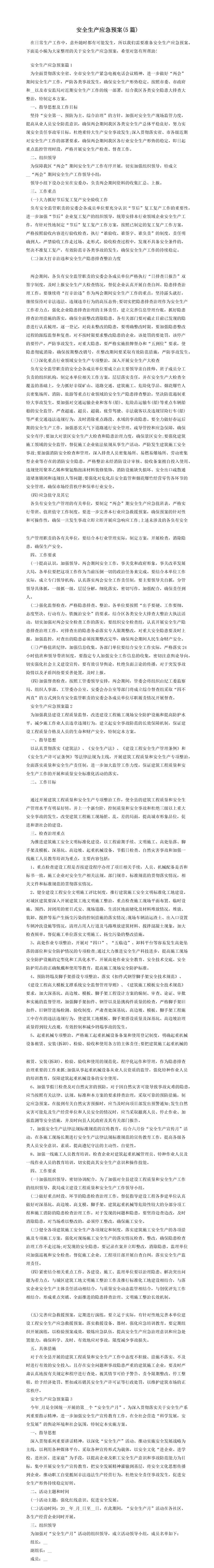 安全生产应急预案(5篇)