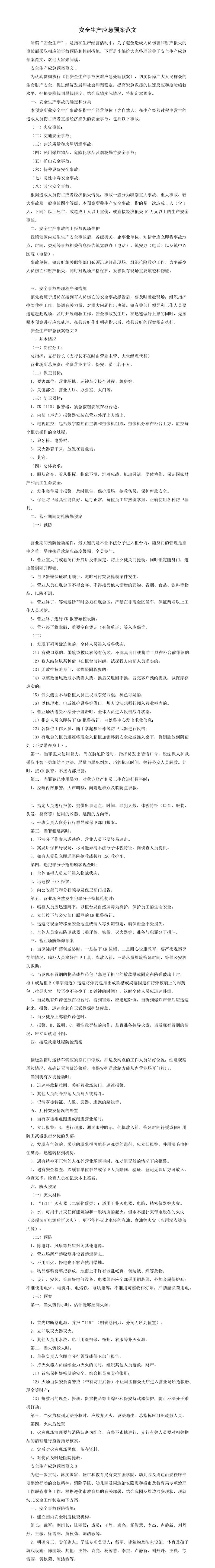安全生产应急预案范文