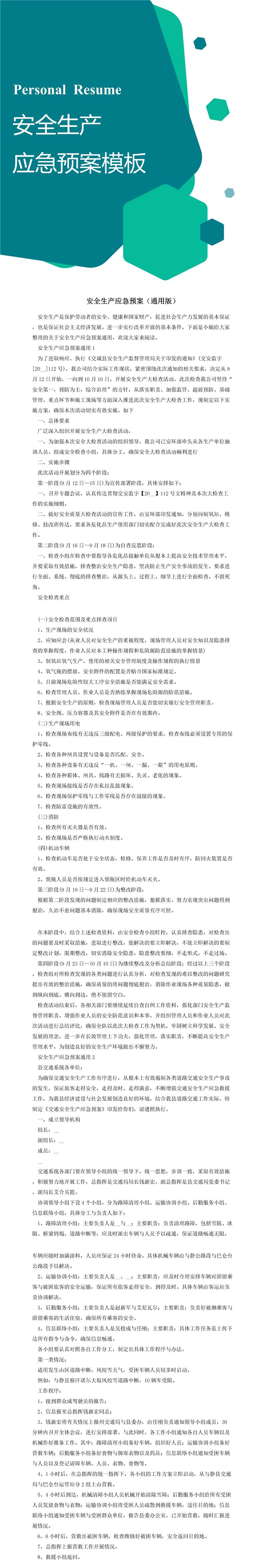 首页 > Word模板 > 计划方案 > 安全生产应急预案模板(通用版)
