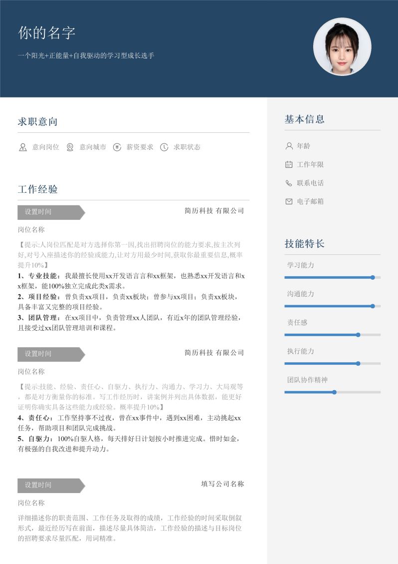 简历模板-在线编辑版5(超强范文)
