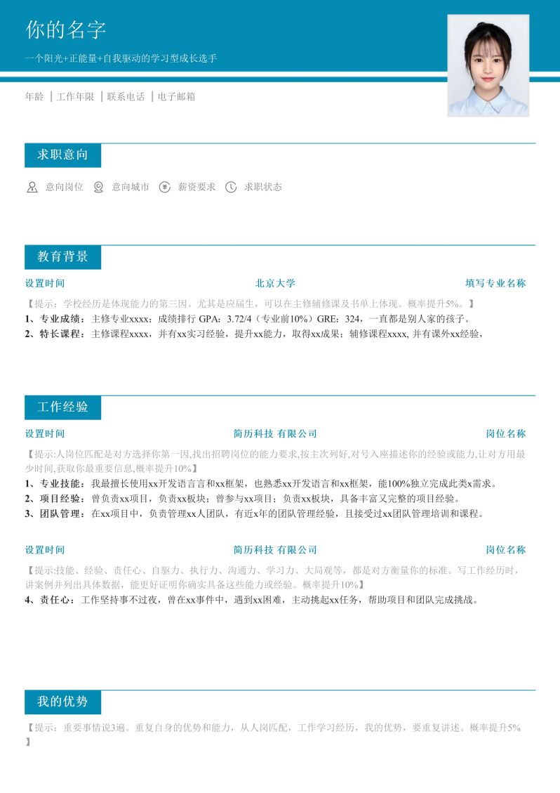 首页 > Word模板 > 简历在线编辑 > 简历模板-在线编辑版12(超强范文)